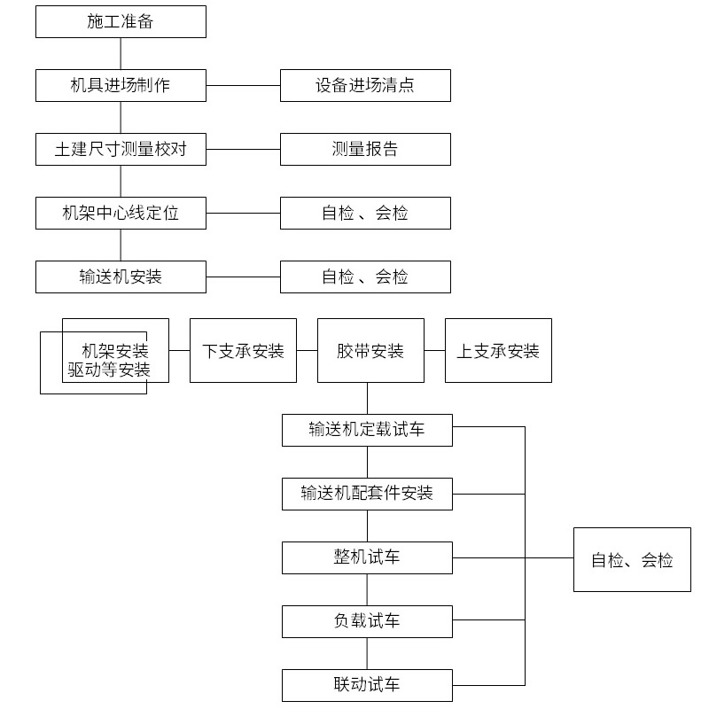 8. 施工過程控制:嚴(yán)格執(zhí)行“三檢制”,實(shí)施工序質(zhì)量檢驗(yàn)程序,特別重視施工過程中的控制、質(zhì)量監(jiān)察。工序交接帶式輸送機(jī)有班組間的交接檢查,上道工序不合格,不準(zhǔn)進(jìn)入下道工序。隱蔽交接在內(nèi)部檢查合格后,再請(qǐng)監(jiān)理工程師檢查,同意并簽發(fā)后方可進(jìn)行下一道工序施工,對(duì)于業(yè)主、工程監(jiān)理及設(shè)計(jì)人員提出的問題,立即組織整改。